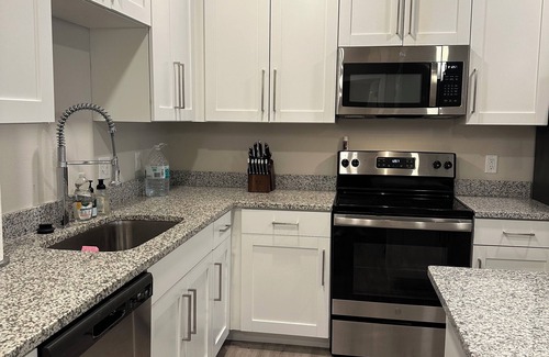 Modern 1 bedroom apt w/pool minutes from tons of attractions and MCI airport has 2 Bedrooms , 1 Bathroom, and max occupancy of 5 people. The minimum rental for this property is 1 nights, but this can change depending on the season you plan on staying. Previous guests have given good rated it, and VRBO labeled it a top-rated Apartment because of the excellent services rendered by the owner or manager of this Apartment, and has consistently provided great experiences for their guests. Most families or guests that use it recommend it to their friends and some of them are repeat guests. Apartment has a friendly neighborhood, and the Waldron has interesting places to visit. If you want to learn more about the Apartment in Waldron, such as places to visit and things to do nearby, you can check below to learn more.