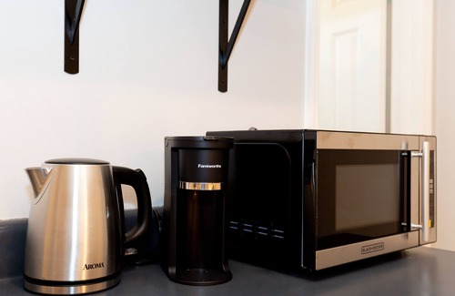 Microwave, Coffee maker, Kettle, French-Press, Small refrigerator