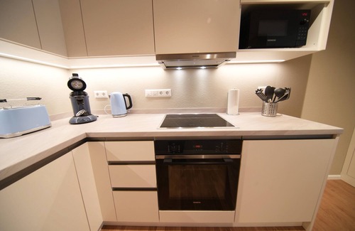 The Apartment 2 at Basler Landstraße 101 offers 60 m² of space for up to 4 guests. You have a living room, a bedroom, and a bathroom with a shower. The apartment is equipped with a very well-appointed kitchen. Private amenities include high-speed Wi-Fi, a washing machine, a dryer, and a modern TV. From the garden terrace, you enjoy a beautiful view of the Schönberg and a mature, traffic-calmed residential area. The apartment is located in the southern district of Freiburg-St. Georgen, is barrier-free, and is an ideal starting point for excursions. Freiburg's historic city center can be reached in a few minutes by car, bicycle, or public transport. Tram and bus stops are within walking distance. The apartment was recently newly opened and impresses with its high-quality, modern, and tasteful furnishings.