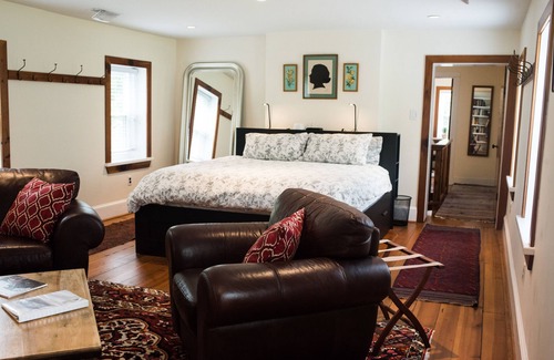 The kitchen is fully equipped with an eight person farm table and antique soapstone sink. You’ll have everything you need to cook a holiday meal, or just make coffee, toast and use the microwave for simple reheating. If you need anything we don’t have, we'll do our very best to accommodate.