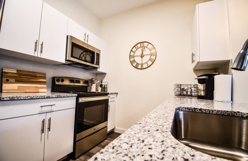 This charming 1 bedroom modern apartment is the perfect stay for any occasion. Features 2 beds, full bath, washer & dryer, fully equipped kitchen, dishwasher, microwave, Keurig coffee maker and additional parking provided upon request.