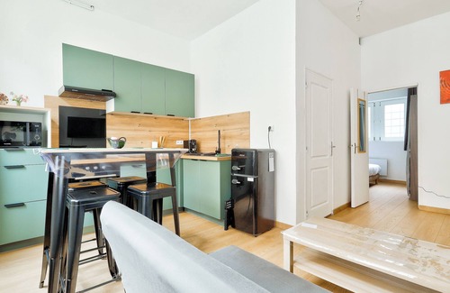 Located in Lille, this welcoming apartment lets you experience it all. Your feet will make short work of the 10-minute walk to Theater Sebastopol or the 11-minute walk to Braderie Lille. Check out other neighborhoods and see more of Lille by hopping on a metro at either Wazemmes Station, a short 7-minute walk away, or Porte d'Arras Station, 8 minutes away.