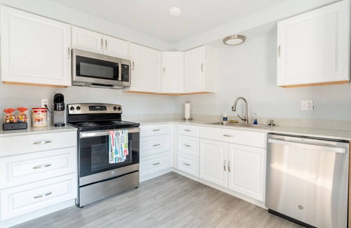 2 bedroom, full-size bath, fully-stocked kitchen, and a large living room/dining room await you!