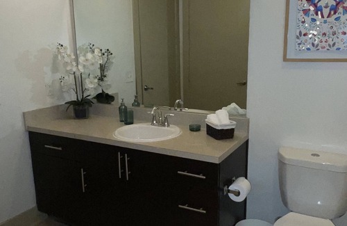 This loft provides an exciting stay with modern amenities, flat screen T.V.'s in each room, and a projector movie experience in the Master bedroom. Bright and modern bathrooms, with hotel-like amenities.