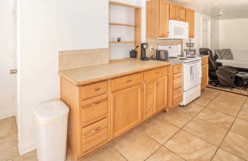 - Cozy efficiency ONE large room ONE QUEEN bed apartment with kitchenette no oven.