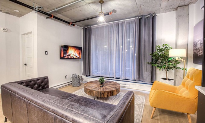 Step into contemporary luxury at this industrial-style 2-bedroom apartment, located in one of Old Montreal’s most iconic neighborhoods. Thoughtfully designed for both comfort and aesthetic appeal, this space is perfect for couples, business travelers, or small groups seeking a stylish home-away-from-home experience.