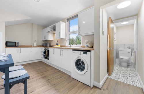 The kitchen comes complete with a dining table and chairs, Fridge/Freezer, Oven, Microwave, Kettle and Toaster as well as cooking equipment and crockery. A washing machine is also available. All cleaning materials including washing up liquid and hand wash are supplied.