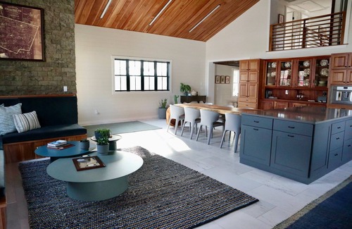 Escape to our cozy, family-friendly farmhouse perfect for a peaceful getaway. Nestled in a serene setting, our modern home features an amazing kitchen equipped with Thermador appliances and a spacious family room with an indoor fireplace and TV. Enjoy year-round picturesque views of the pond from the front porch with rocking Adirondack chairs, and charming barn with cows, offering a delightful rural experience.