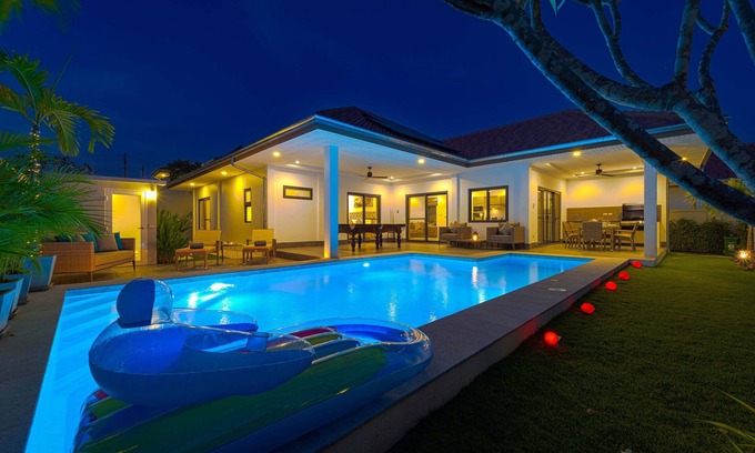 Best-rates for the Hua Hin villa starts from $167 per night with includes Barbecue/Outdoor Cooking, Child Friendly, Kitchen, Air Conditioner, Pool, Private Pool, Balcony/Terrace, Bedding/Linens, Internet, Laundry, Parking, Wellness Facilities, Entertainment with all other amenities. Perfect for Weddings is committed to ensuring every guest experiences a comfortable and extraordinary stay, whether planning a romantic getaway, a honeymoon, a pet-friendly stay, or celebrating with the entire wedding party.