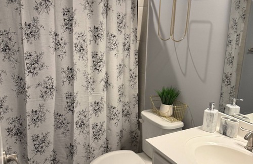 • Bedroom 2: Full bed, 40” TV, shared bathroom