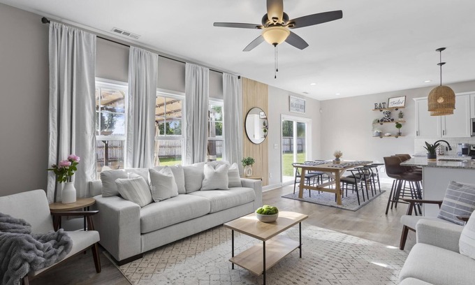 This 3 bedroom 2.5 bathroom home has been set up with much care and detail for guest to stay and enjoy their time with family in this beautiful home. The backyard offers outdoor games, a covered seating area and for cool nights a fire pit with hanging hammock chairs to sit around the warmth and enjoy some s'mores or hot chocolate and at night enjoy the view of the stars. The home is just on the outskirts of Jacksonville