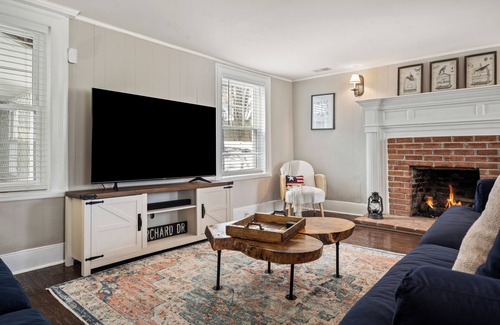 Our home has a beautiful, bright kitchen with some surprises a cook will love. It spills to a side porch ample in size for entertaining, dining, chatting, and watching the deer play. A dedicated dining room inside and large living room with gas logs in the fireplace round out downstairs. As you enjoy walking up the beautiful angled staircase, the original floors grab your attention. The place resonates the charm of old...beautiful doors and knobs, a pocket door, and sloped floors and windows. The master suite includes a queen sized bed and desk for Zoom calls and free weights, and a yoga mat for a quick workout.