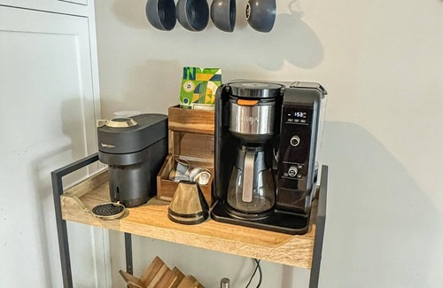 Enjoy a bright, open-concept layout with a spacious living room, a fully equipped chef’s kitchen, and plenty of room to gather, cook, and relax. The kitchen features high-end GE appliances, a large island, and everything from a Nespresso bar to an air fryer and All-Clad cookware—perfect for foodies and families alike.