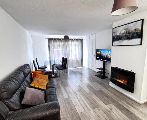 Providing a garden, Modern 3BR House with Free Parking provides accommodations in Slades Green. Both free Wifi and private parking are available at the vacation home free of charge. There's parking on-site, and the property offers an electric vehicle charging station. Offering a terrace and garden views, the spacious vacation home includes 3 bedrooms, a living room, flat-screen TV, an equipped kitchen, and 1 bathroom with a hot tub and a bath. The accommodation has a fireplace. London City Airport is 9.3 miles away.