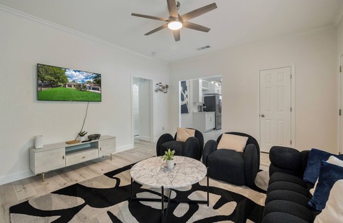 Modern 3BR in Bishop Arts Walk to Shops is located in Oak Cliff. Modern 3BR in Bishop Arts Walk to Shops provides accommodation, featuring TV, Security/Safety, Fireplace/Heating, among other amenities. This House features TV, Security/Safety, Fireplace/Heating, to make your stay a comfortable one.