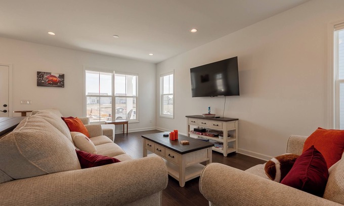 Welcome to your Blacksburg getaway! This bright and modern 3-bedroom townhome features stylish furniture, a fully equipped kitchen, two inviting bathrooms, and comfy beds with crisp linens. Enjoy your morning coffee on the private balcony, catch up on work at the dedicated workspace, or relax in the cozy living area with a smart TV. Located minutes from Virginia Tech and downtown, this home is perfect for families, professionals, or Hokie fans visiting the area.