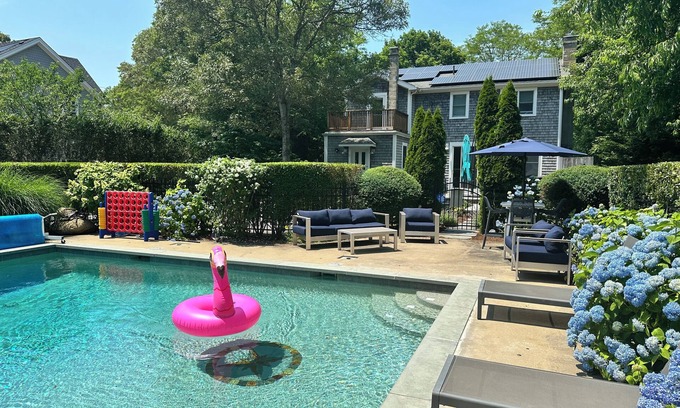 Modern 4 bed/35 bath Farmhouse, private HEATED POOL and AC on bike path is located in Oak Bluffs. Modern 4 bed/35 bath Farmhouse, private HEATED POOL and AC on bike path provides accommodation, featuring Balcony/Terrace, Sports/Activities, Bedding/Linens, among other amenities. This House features Balcony/Terrace, Sports/Activities, Bedding/Linens, to make your stay a comfortable one.