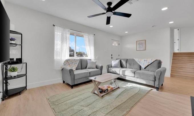 Modern 4BR3Ba Home with Pool and Fire Pit is located in Phoenix, just 15 miles from Phoenix Convention Center and 15 miles from Copper Square. This property offers access to a terrace, free private parking, and free Wifi. On clear days, guests can head outside to enjoy the vacation home's outdoor fireplace or simply kick back and relax. The air-conditioned vacation home consists of 4 bedrooms, a living room, a fully equipped kitchen with a dishwasher and a coffee machine, and 3 bathrooms with a walk-in shower and free toiletries. A flat-screen TV with streaming services is offered. The vacation home offers bed linen, towels, and laundry service. In addition to a year-round outdoor pool, the vacation home also offers outdoor play equipment. Musical Instrument Museum is 5.5 miles from Modern 4BR3Ba Home with Pool and Fire Pit, while Wrigley Mansion is 8.8 miles from the property. Scottsdale Airport is 6.2 miles away.