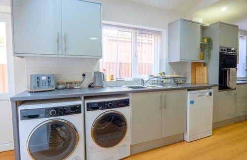 Modern 7 Bedrooms & 4 Baths - Smart TV, WIFI, Washer/Dryer & Parking NEC, JLR is located in Stonnall. Modern 7 Bedrooms & 4 Baths - Smart TV, WIFI, Washer/Dryer & Parking NEC, JLR provides accommodation, featuring Barbecue/Outdoor Cooking, Kitchen, Laundry, among other amenities. This House features Barbecue/Outdoor Cooking, Kitchen, Laundry, to make your stay a comfortable one.