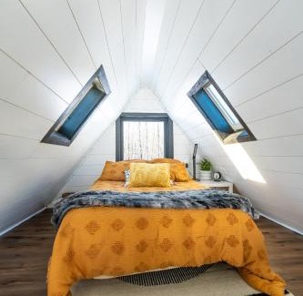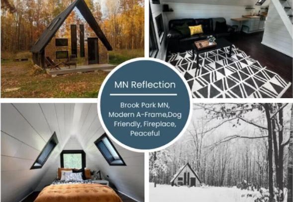 A recently renovated vacation home, Modern A Frame in the woods Pet friendly offers accommodations in Brook Park. This vacation home features air-conditioned accommodations with a patio. There's an outdoor fireplace and guests can use free Wifi and free private parking. This vacation home includes 1 bedroom, a living room and a flat-screen TV, an equipped kitchen with a dining area, and 1 bathroom with a walk-in shower and a washing machine. Guests can take in the ambience of the surroundings from an outdoor dining area or keep warm by the fireplace on colder days. The vacation home offers bed linen, towels, and laundry service. Guests at the vacation home will be able to enjoy activities in and around Brook Park, like hiking. The vacation home has a picnic area where you can spend the day outdoors. St. Cloud Regional Airport is 60 miles from the property.