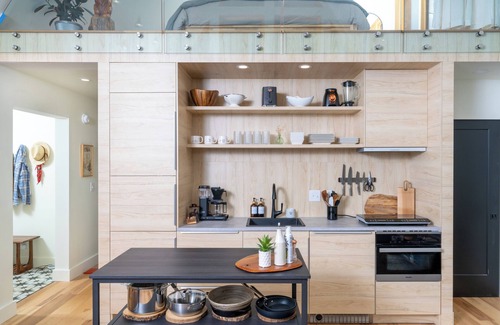 “The loft has a king bed that looks out the A-frame windows into the woods as the sun rises each morning....” ~Kyle