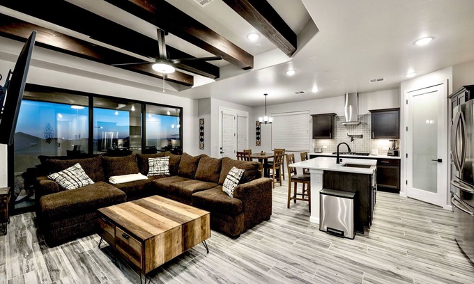 This fully-furnished modern home is perfect for weekend getaways or longterm stays. With latest in appliances and style, the Powder River Villa offers the comfort of home with a luxury feel. Stream Netflix in front of the stacked stone fireplace, decompress in the pebble rain shower, or simply relax on the back porch to the beautiful New Mexico sunsets. This stylish space can be the romantic escape you're seeking or comfortably fit your group of 7.