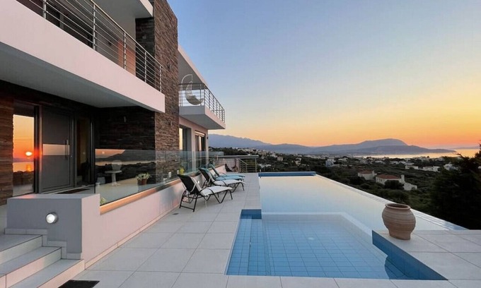 The allure of this villa lies in its exceptional panoramic views of Souda Bay & the White Mountains, visible from almost every corner