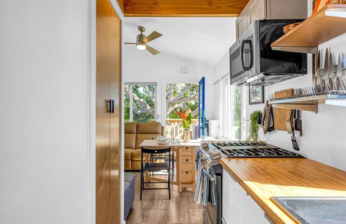 Just a few minutes drive to the beach, our 2019-built tiny home is the destination for your next getaway or remote work stay. The tiny home and its outdoor space are fully private spaces for you to enjoy when not out discovering our wonderful Monterey Peninsula.