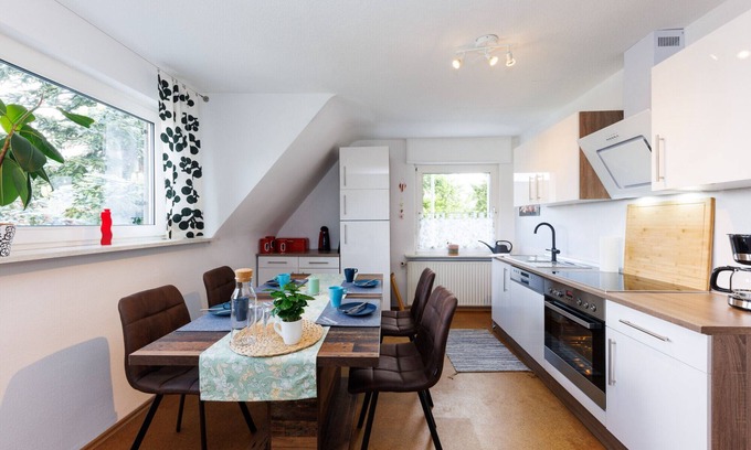 Modern and beautifully situated top floor apartment (80 sqm) is located in Hilchenbach. Modern and beautifully situated top floor apartment (80 sqm) provides accommodation, featuring TV, Balcony/Terrace, Bedding/Linens, among other amenities. This Apartment features TV, Balcony/Terrace, Bedding/Linens, to make your stay a comfortable one.