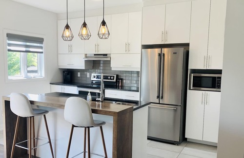 Welcome to your home away from home! This beautiful, modern, 3 bedroom home is located 25 minutes outside of Ottawa. This very clean home includes a large primary bedroom with a king size bed, ensuite bathroom and walk-in closet. In addition, there are 2 more bedrooms and 3 other bathrooms. A short drive can lead you to a variety of amenities such as: Calypso Waterpark, Amazon Warehouse, restaurants, grocery stores, pharmacies and community centres. Bring the family or stay while you work.