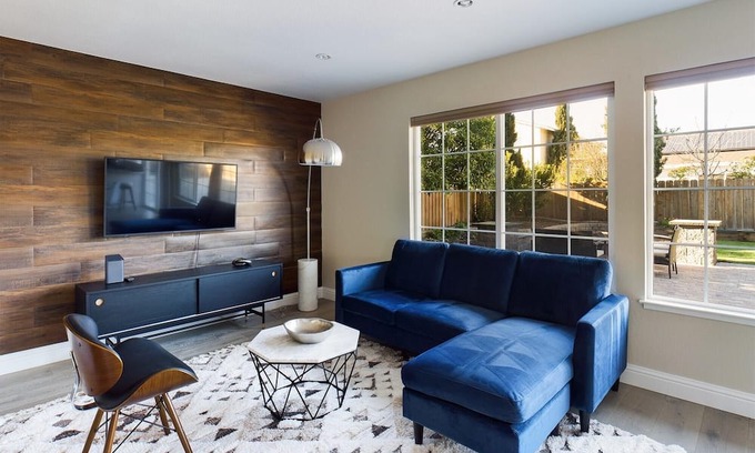 Family-friendly Union City is nestled in the heart of the Bay Area. This lovely 3 bedroom is located near Coyote Hills Park and spots like Union Landing Mall. Starbucks, Walmart and a variety of international markets like Seafood City, New India Market, etc and local favorite eateries are close by. Bright, airy style, updated kitchen, spacious family rooms, cozy bedrooms, dedicated office space, balcony, and expansive fenced yard. Easy access to companies like Meta, Tesla. Variety of fruit trees.
