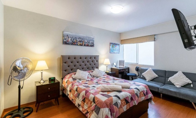 New fully furnished and equipped apartment in Miraflores (one of the best tourist districts in Lima); ideal for tourists, business or families. Building with 24 hour security surveillance. Steps away from “Malecon de la Marina” and Maria Reiche Park, with beautiful gardens, playgrounds and a walking path to the Costa Verde beaches with a spectacular view of the Pacific Ocean. You will be staying in one of the best gastronomic areas of Lima, with famous restaurants where you will find the best Peruvian food.
