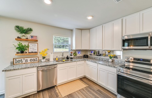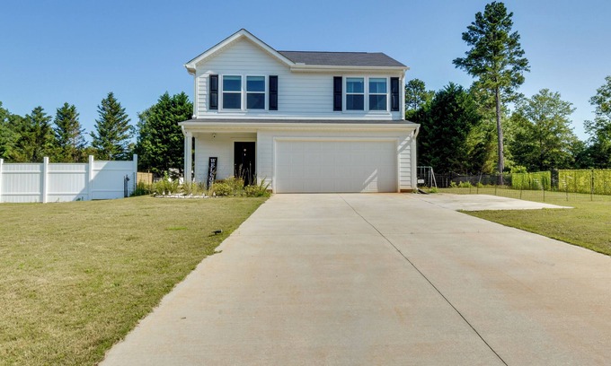 Your charming family escape awaits at this recently built vacation rental in Anderson, SC. Boasting a furnished patio, grill, and fire pit for s'mores, 'Serendipity By The Lake' offers various ways for your crew to unwind outdoors. After swimming in Lake Hartwell or visiting historic downtown attractions, return to the 3-bedroom, 2.5-bath home and catch up on work in the convenient office. Later, play a board game with the kids or curl up with a pet by the electric fireplace for a movie night.