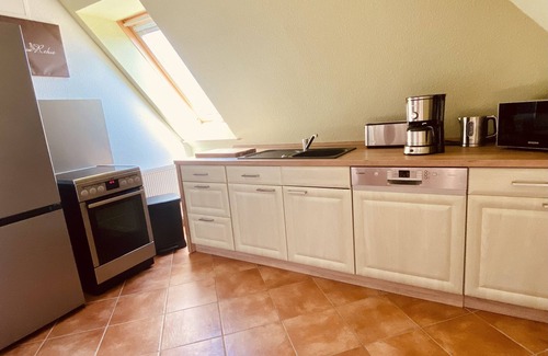 The modern apartment on the former site of a vegetable garding in the southeast of Erfurt (rural structure surrounded by fields), is the ideal starting point for your excursions in Erfurt (center 4 km away) and the surrounding area. Anyone who appreciates the quiet of the suburbs but still wants to reach the city center quickly has come to the right place. Due to its facilities, the apartment is also suitable for longer stays.