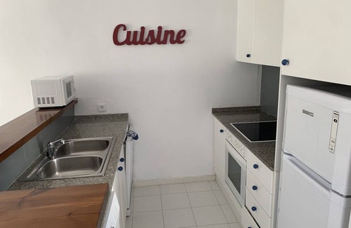 The apartment is composed of a living room with a fully equipped kitchen, two bedrooms, one with a double bed and one with a bunk bed. It also has a bathroom and terrace.