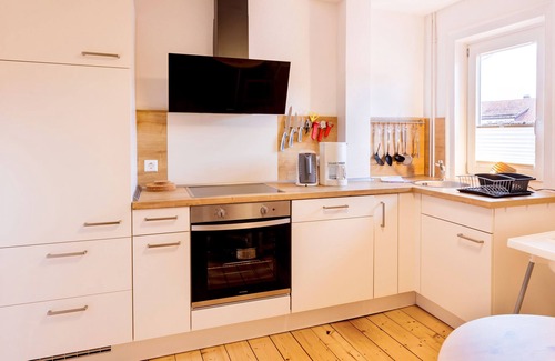 The 2019 newly renovated, 65 sqm, apartment is located right in the city center in a half-timbered house from 1889.