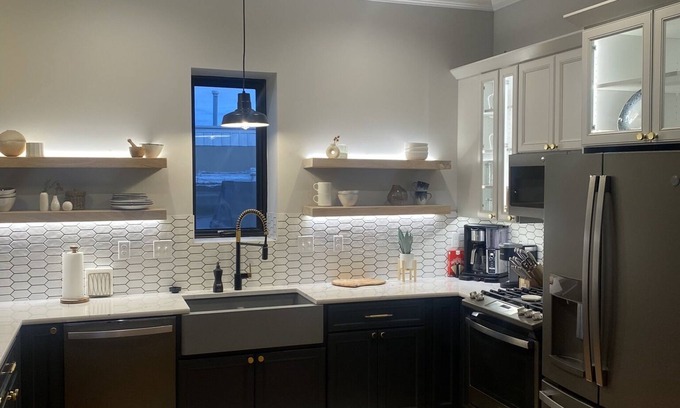 Incredible kitchen with waterfall countertops with views overlooking downtown Ord. Walking distance to Carl’s Tavern for delicious steak, Scratchtown Brewing for cold beers or to the grocery store to prepare your own meal. Grace’s Attic on the Square will make you feel home away from home.