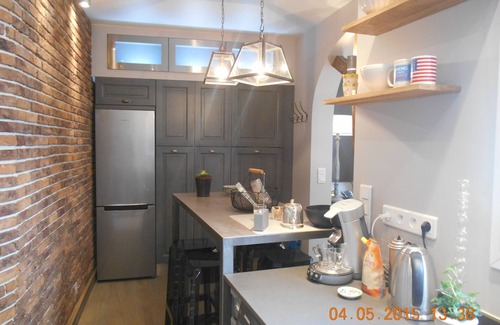 Modern 1 bedroom apartment for 2 people: 1 double bedroom and a sofa bed in the living room. In the bathroom, shower and bath with tv. Another TV in the room. The open kitchen is fully equipped and with a bar near the living room. The apartment is located near the Champs-Élysées avenue, the Palais des Congrès-Porte de Maillot, an excellent location for tourism and business. the