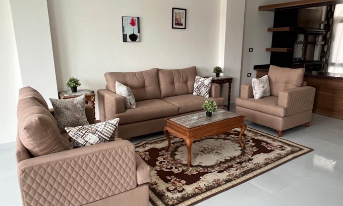 Modern apartment offers accommodations in Madinat Al Ashir min Ramadan, 22 miles from French University in Egypt and 22 miles from Misr International University. This property offers access to a balcony, free private parking, and free Wifi. The accommodation features full-day security, luggage storage space, and currency exchange for guests. Featuring a terrace and garden views, the spacious apartment includes 3 bedrooms, a living room, flat-screen TV, an equipped kitchen, and 1 bathroom with a walk-in shower and a bidet. The apartment offers bed linen, towels, and daily room service. A mini-market is available at the apartment. Sightseeing tours are available in the neighborhood. A car rental service is available at the apartment. BUE - The British University In Egypt is 23 miles from Modern apartment. Cairo International Airport is 29 miles from the property, and the property offers a paid airport shuttle service.
