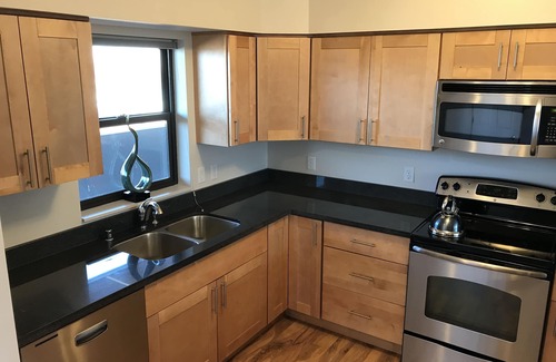 Light, modern and large apartment steps away from St. Patrick's hospital. Soak in spectacular views of Mount Sentinel and downtown Missoula from the 4th floor patio or just relax in the spacious and modern apartment. Within less than a block, find Draught Works brewery, Olive & Iron fashion boutique, China Woods Antiques and Little McCormick Park. Three blocks on begins downtown's vibrant restaurant, brewery, and shopping scene. All this just a dozen blocks from the Orange St freeway exit.