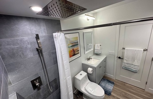 A meticulously furnished and recently refurbished studio awaits, promising absolute privacy and exclusive enjoyment of its prime central location and opulent amenities. Revel in its contemporary design featuring a luxurious tiled rain shower, expansive television, plush queen-sized bed, and spacious kitchen. Located a mere 20-minute drive from virtually every corner of San Diego. Nestled within a tranquil and secure neighborhood, this studio ensures both safety and serenity.