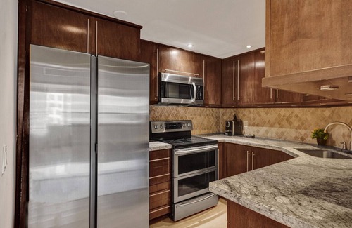 Our condo is the perfect option for travelers looking for roomy, comfortable accommodations enhanced by thoughtful touches to elevate their stay. With two spacious bedrooms and two full bathrooms, there’s plenty of room to spread out—ideal for families or groups of friends. The modern kitchen comes fully stocked with up-to-date appliances, cookware, and utensils, making home-cooked meals a breeze. The open-plan living and dining space creates a cozy, welcoming setting for shared moments and memorable conversations. Step onto your private balcony to take in stunning views of the ocean and city skyline—an ideal spot to savor your morning coffee or wind down in the evening. For your convenience, complimentary Wi-Fi and cable TV are included, so you can stay connected and entertained throughout your stay.