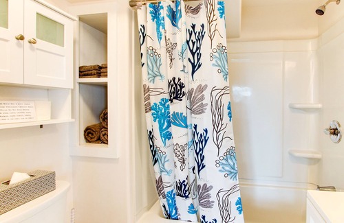 Completely rebuilt and tastefully appointed, this home has a comfortable, modern vibe. Step inside and notice the stylish furnishings and large windows providing plenty of natural light. Lounge in the living room while you take in lovely ocean views. Slide a DVD into the player or stream a movie on Netflix via the Roku, and enjoy the TV and electric fireplace. The complimentary WiFi will allow you to get your bearings, find directions, and plan your itinerary.