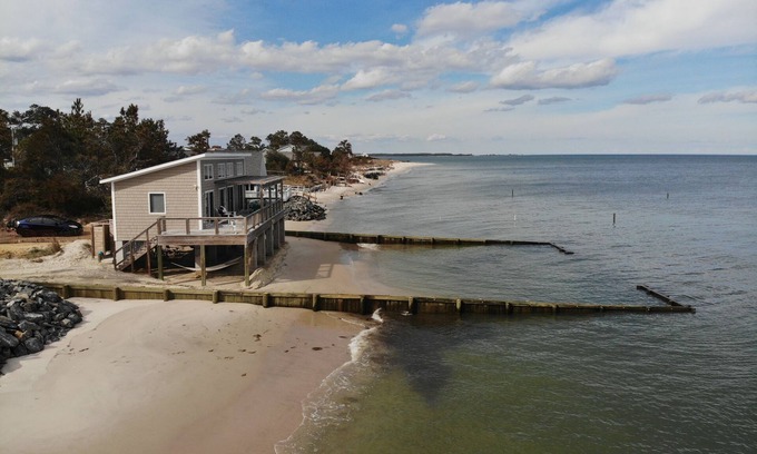 Welcome to Last Flight Out! Our cottage was built in 2016 to the latest beachfront constructions standards and is situated on a remote, private, uniquely beautiful beach at the southernmost tip of Mathews County.