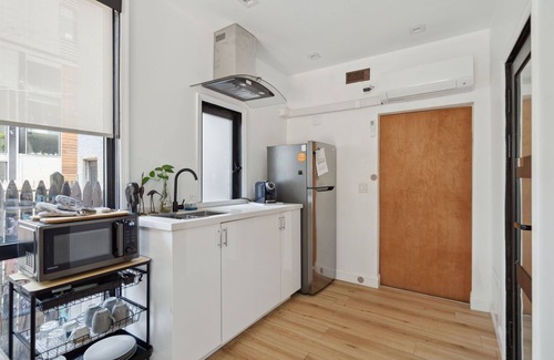 Your Philadelphia adventure begins at this enjoyable 1-bedroom bi-level studio. This guest house offers a comfy queen bed and a convenient sofa bed for extra guests. With amenities like a washing/drying machine, WiFi, clothing steamer, heating, and AC, you'll have everything you need for an excellent stay. The bathroom features a bidet and a hair dryer for added convenience. The small kitchenette provides fridge, microwave/oven and countertop single induction for light meal preparation. Kickback and relax a warm cup of coffee or tea (Lavazza coffee pod system) in your private backyard / greenhouse.
