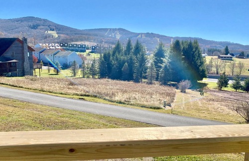 Cheerful Cabin facing the Canaan Valley ski slopes with beautiful sunset. Beautiful community with shopping, dining, and all year activities all around. Upstairs has 3 en suite bedrooms, walkout basement is a huge studio with a twin/day bed and full bath
