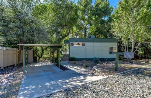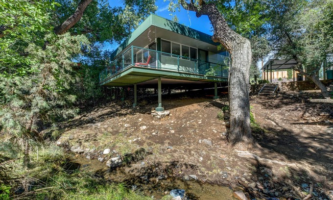 This contemporary cabin is the perfect place to relax and unwind in nature. The porch wraps around to overlook Alberson Wash Creek. It's just minutes away from Downtown Prescott, or any outdoor activity you might desire during your stay.