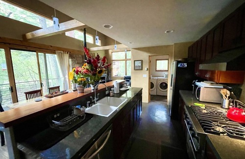 The home has ample deck and patio space overlooking the creek and hot tub, perfect for out door entertaining.