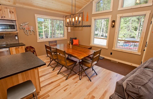 Come relax by the fire and enjoy looking out the many windows and being surrounded by nothing except trees, or maybe the occasional moose, deer or elk. Spend some time eating your meals around a large reclaimed wood table on the covered porch or crowding around the kitchen island while meals are prepared.