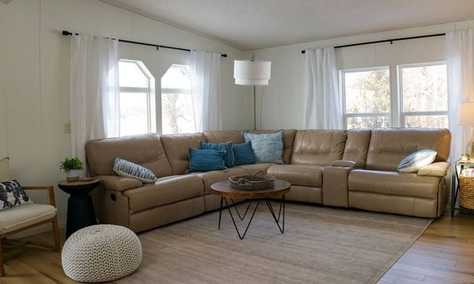 Relax in a wide-open living room with a wrap-around couch, smart TV, and easy access to our full kitchen with island seating. In the summer months, step out onto the massive back patio and grill or watch the sunset over the lake. There is a Pellet Grill available for your use. Please bring your own pellets if you want to use that grill. It is a Green Mountain Smoker.